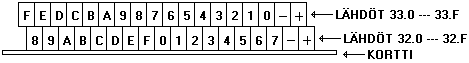 Lähempänä korttipohjaa olevalla rivillä on parillisen lähtönumeron ryhmä, esim. 32.0 ... 32.F