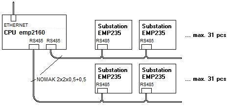 CPU-kortti sisältää kaksi RS485-kenttäväylää, kumpaankin voidaan liittää max. 31 kpl EMP-235 -ala-asemaa tai EMP-231 -vaakaa. Ne käyttävät kommunikoinnissa EMPWAY -protokollaa.
