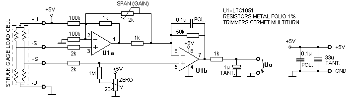 Zero-trimmerillä säädetään nollakohta eli vaa'an tyhjäpaino ja SPAN-trimmerillä vahvistus.