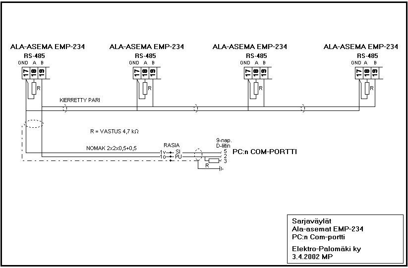 | EMP-234-ala-asemat ja EMP-231-vaa'at on tarkoitettu RS485-standardia käyttävään Empway-väyläliikenteeseen. Usein kuitenkin on käytetävissä tavallinen PC, jossa olevat Com-portit käyttävät RS232-standardia. Tarvitaan muunnin RS232/RS485. |